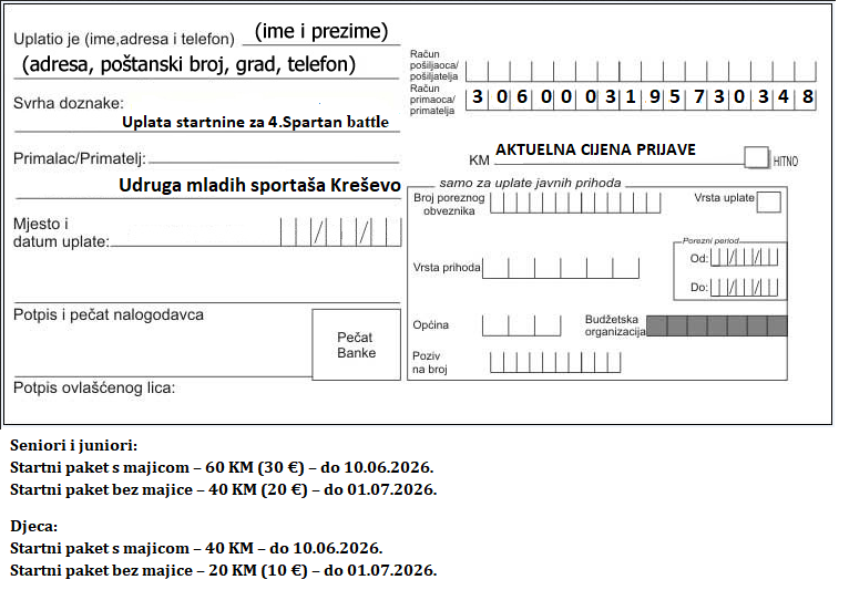 Startni paket bez majice – 40 KM (20 €) – do 01.07.2026.