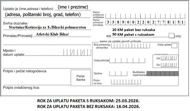 Svrha uplate : Startnina/Kotizacija za 5. bihaćki